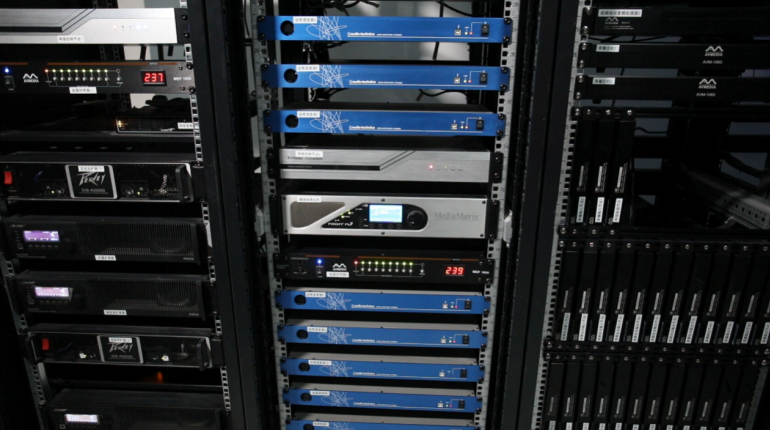 5、系统扩展性强:系统无中心矩阵的限制,全部的输入输出通道都是IP化,则在扩声性能上,可以随意的增加输入输出通道,无通道数量的限制。